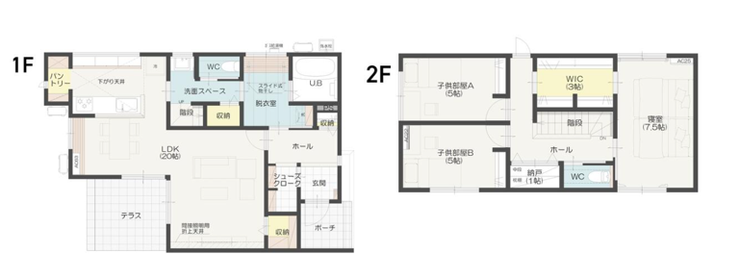 ☆20帖の広いLDK ☆洗濯→干すがその場で完結! ☆1階の収納力の高さは=便利さに直結! ☆2階のウォークスルークローゼットもすごく便利♪